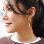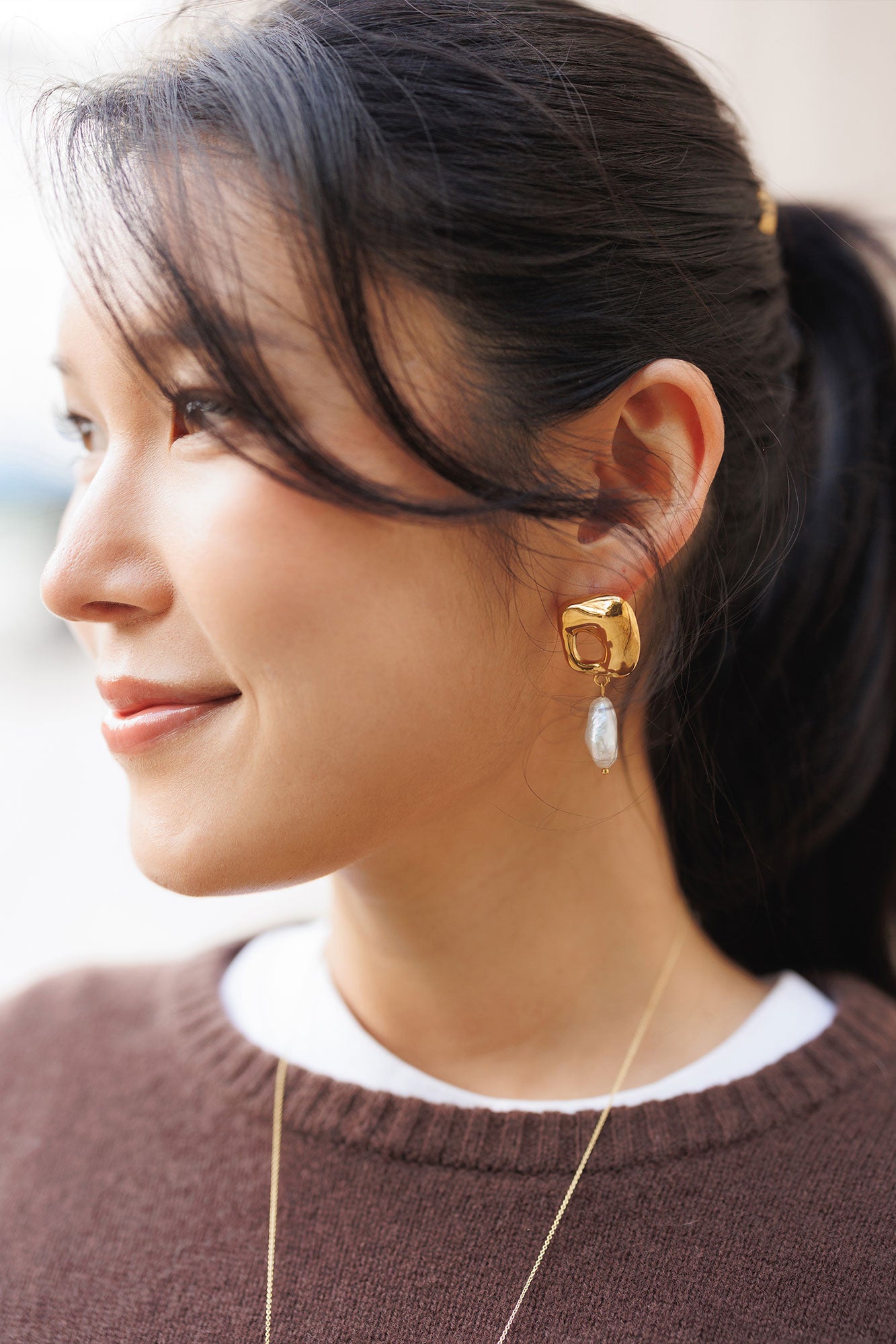 Cercei realizati din inox placat cu aur de 18k (hipoalergenici si anti-tarnish) si perle de cultura baroc.