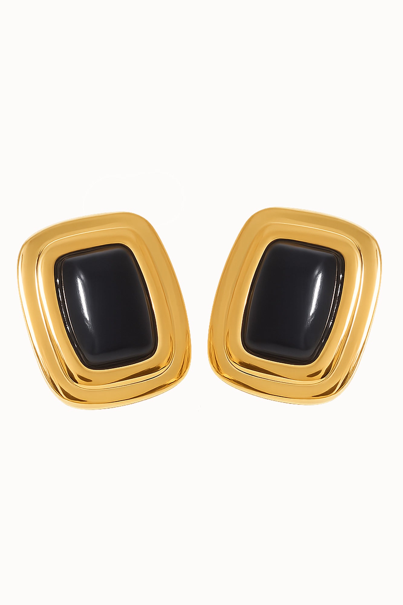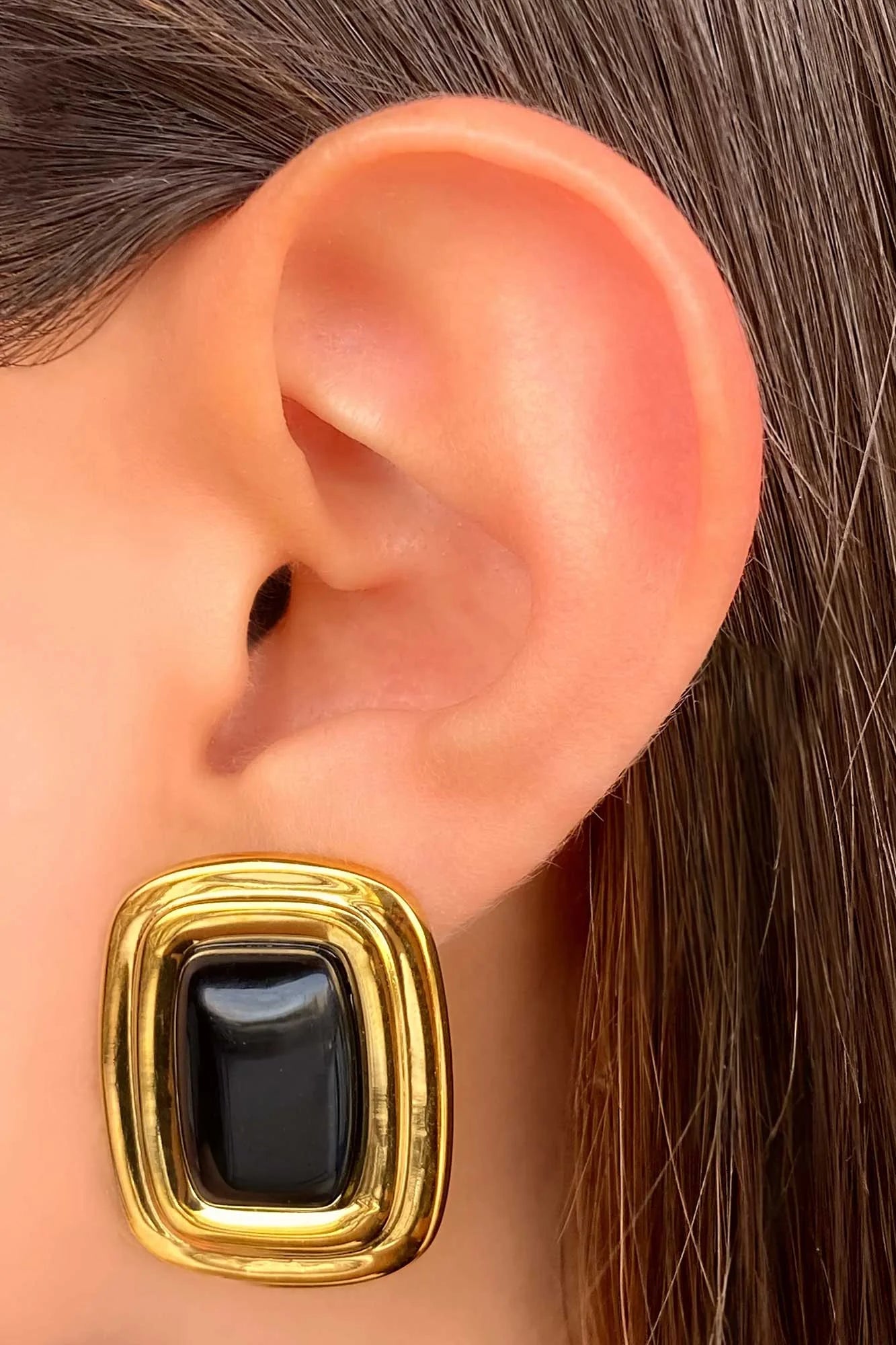 Cercei realizati din inox placat cu aur de 18k si onix negru (hipoalergenici si anti-tarnish).